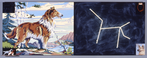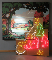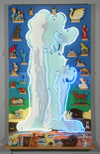 After the Storm (1996), neon, wood, paint, postcards, found objects, 86x92x12 (coll. Nicolaysen Art Museum, Casper, Wyoming)