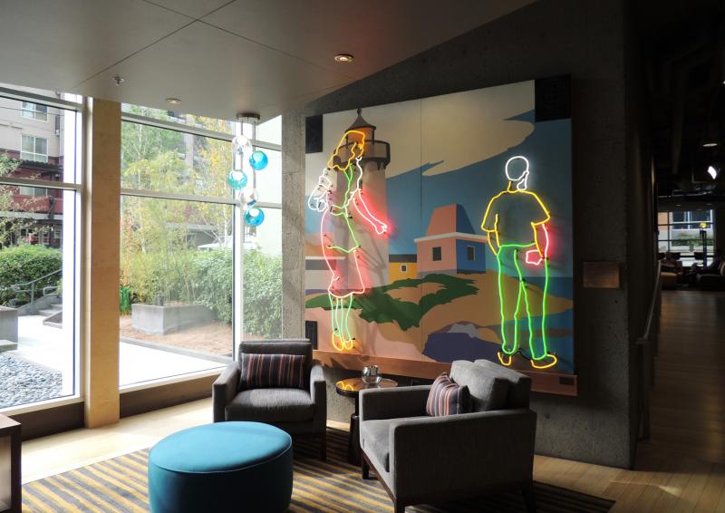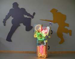 Face to Face (2000), neon, wood, paint, 90x120x7 (coll. University of Kansas Hospital)