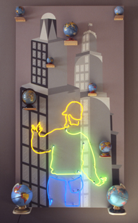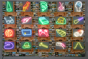 This Is Your Life(1996), neon, wood, paint, found objects, 104x120x63 (coll. Museum of Arts & Culture, Spokane)