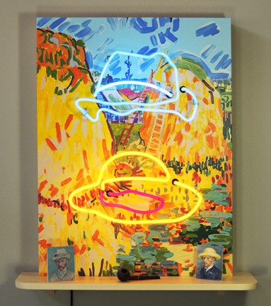 Night Sky in Arles (2015), neon, wood, acrylic/latex paint, chalk, 37 x 92 x 6.25 (private collection, Portland, Oregon)