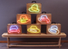 The sculptures are made of 1/4" birch plywood panels painted with acrylic latex to which I often add handcrafted wooden elements and found objects. The neon was fabricated for many years in Bozeman by Bill Todd until his retirement and for the last ten years by John Nyman in Billings. All solid state transformers and wiring are hidden behind the panels and require a grounded outlet. All large panels are secured with wooden supports that are screwed into the wall.